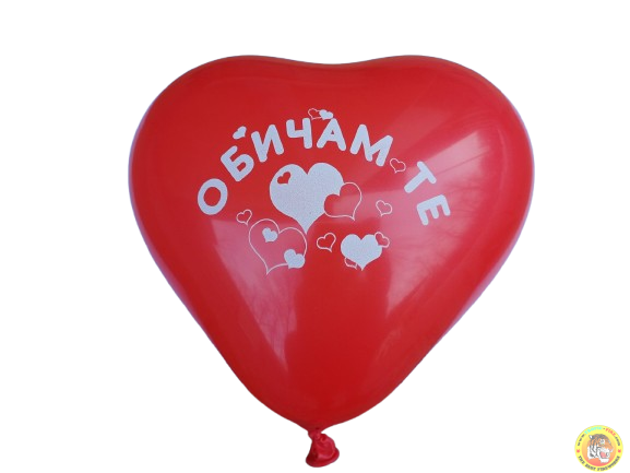 Балон сърце, латекс червен цвят с печат Обичам те - , 28см, 100бр.